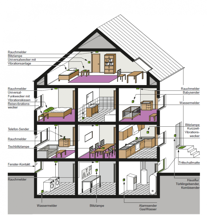 Das komplette Lichtsignalsystem zur Umwandlung akustischer Signale wie Telefon, Rauchmelder, Türklingel, Babyschrei, Weckalarm in optische Blink- und Vibrationsimpulse. Zusätzlich als Alarm-und Personenrufanlage verwendbar.